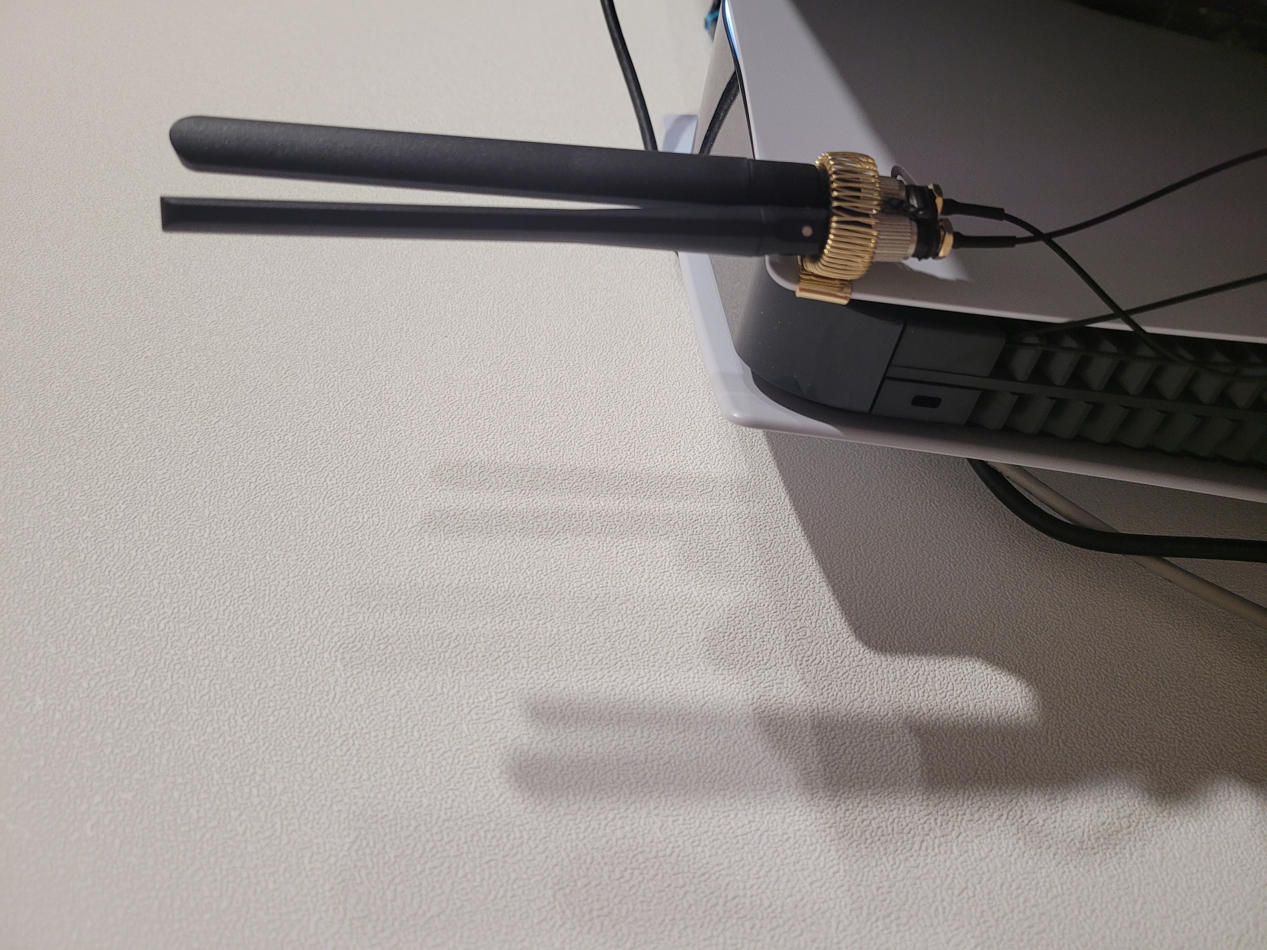 - Female-SMA — U.FL 케이블을 하단 배기 구멍을 통해 넣어서 커넥터와 연결해줍니다. 잘 맞추시고 살짝 쿡 누르면 들어갑니다. 그리고 구멍을 막지 않도록 저는 테이프로 정리해 주었습니다.