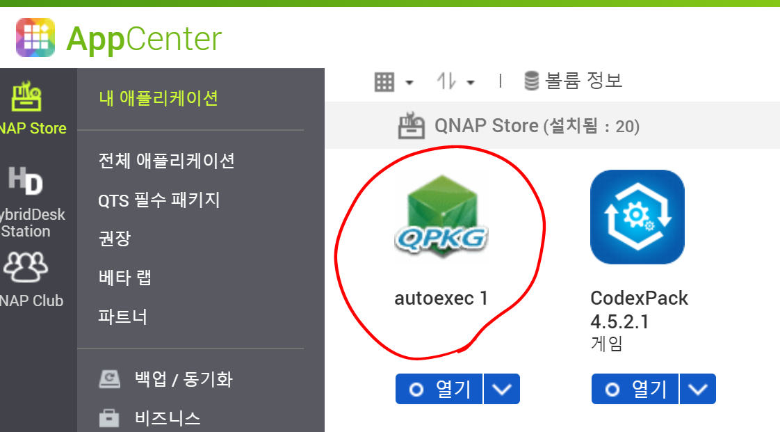 /share/CACHEDEV2_DATA/.qpkg/JRE/jre/bin/java -jar Server.jar &이후 App Center에 보면 autoexec pkg가 추가되어있고 시작, 정지가 가능하며 재부팅시 자동으로 서버가 수행되게 됩니다.